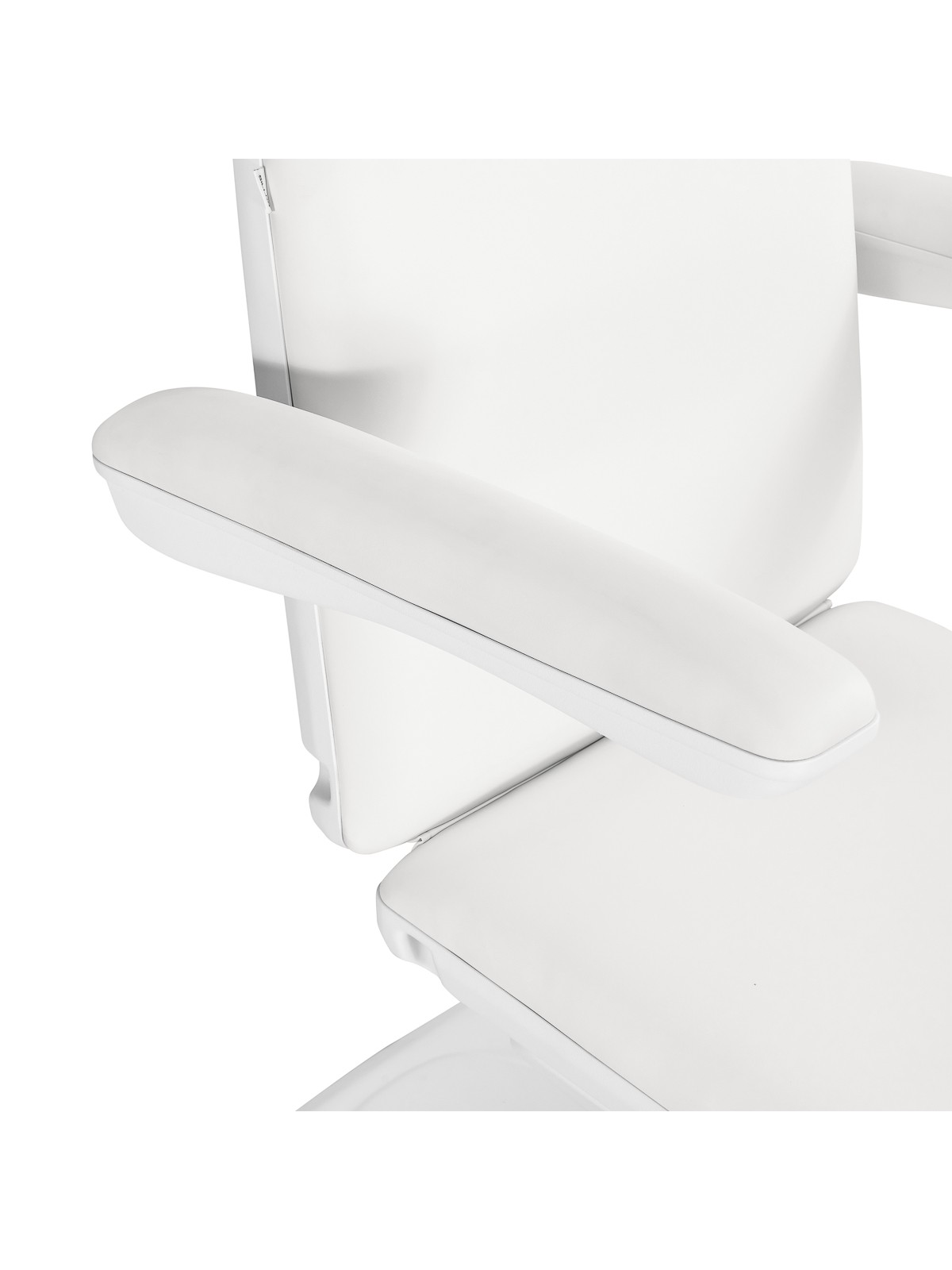 Opěrka hlavy, kterou lze prodloužit o 20 cm, umožňuje přizpůsobit křeslo výšce uživatele a poskytuje stabilní oporu hlavy během ošetření. Pohyblivé područky, které lze otočit o 180°, usnadňují usazení a zajišťují pohodlný přístup pro osobu provádějící ošetření. V případě potřeby je lze také snadno odejmout. Tato zařízení zvyšují pohodlí uživatele a podporují ergonomickou organizaci práce.