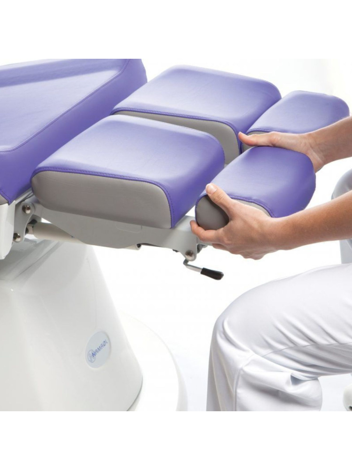 Namrol Nova je víc než jen křeslo. Jde o kombinaci inovace, funkčnosti a designu. Jeho unikátní design s dělenou, dvoudílnou podnožkou umožňuje specialistovi přesně nastavit polohu pacienta a zároveň zajistit pohodlí a bezpečnost. Elektromechanický motor, poháněný nízkým napětím a řízený pokročilým systémem SMT, zaručuje přesné, rychlé a spolehlivé pohyby křesla. Díky tomu se léčba stává účinnější a pacienti se cítí pohodlněji.