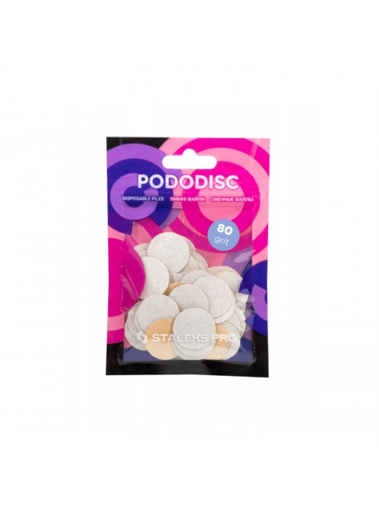 POODISC STALEKS Ersatzpads haben einen Durchmesser von 20 mm (Größe M) und eine Körnung von 80. Hochwertiges Schleifmaterial sorgt für eine zuverlässige Haftung, die ein einfaches Arbeiten mit den Füßen ermöglicht.