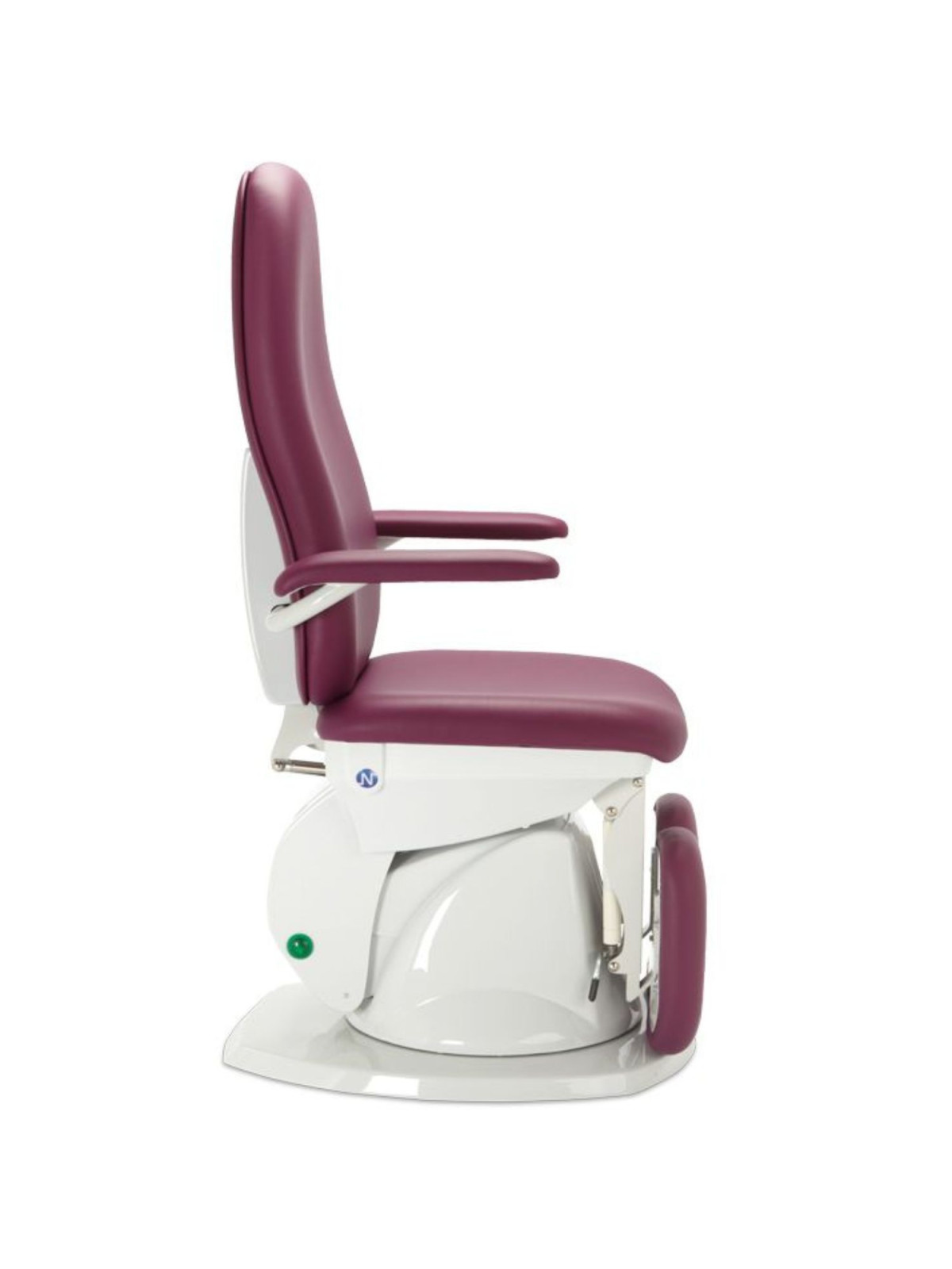 Die rutschfeste, nahtlose Polsterung des Sessels ist in 14 verschiedenen Farben erhältlich, wodurch Sie die Optik an Ihre individuellen Vorlieben anpassen können. Die anatomische Rückenlehne und die gepolsterten Armlehnen sorgen für Komfort während der Behandlungen. Darüber hinaus verfügt der Stuhl über eine doppelt ausziehbare Fußstütze, die die Anpassung der Position des Patienten erleichtert. Der Omega-Stuhl ist ein Garant für Komfort bei Behandlungen.