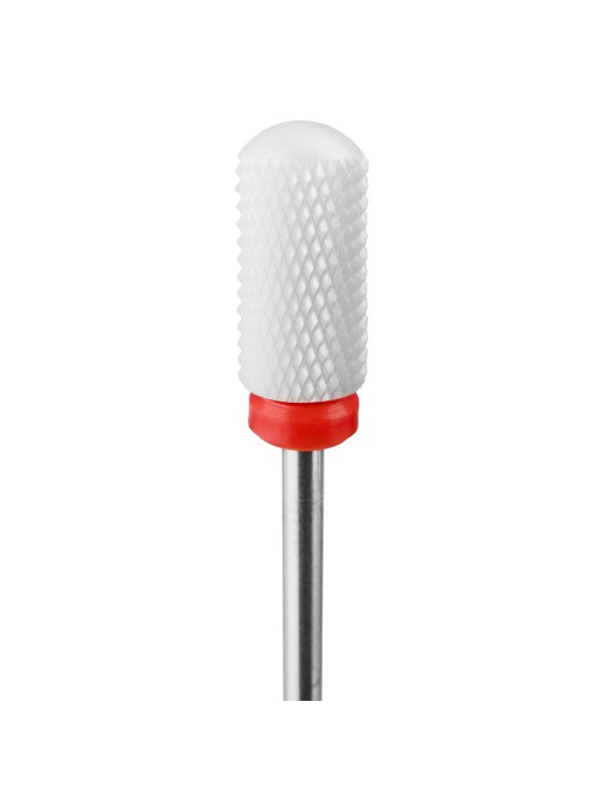 The red rounded cylinder ceramic cutter is a modern tool for removing gel, acrylic, hybrid mass and cuticles. Equipped with a rounded tip, it ensures safe work, eliminating the risk of cuts.
