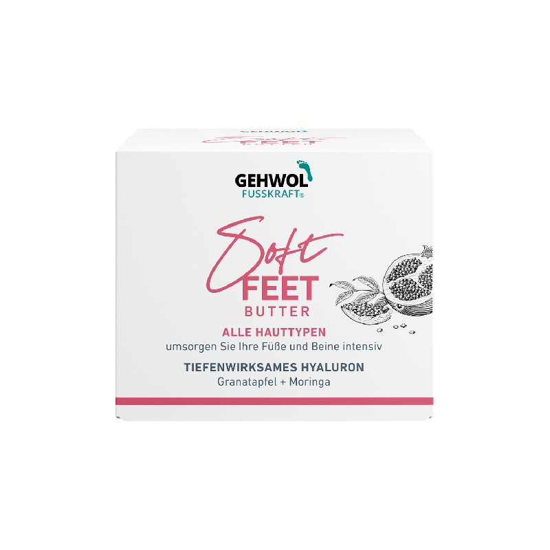 GEHWOL SOFT FEET Butter is a professional foot and leg butter for intensive care of skin requiring nourishment, smoothing and long-lasting hydration. The rich formula and delicate pomegranate scent enhance the comfort of each treatment.