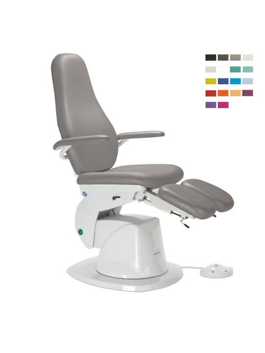 Patentuota stabilizavimo sistema užtikrina, kad kėdė išliks stabili bet kokiomis sąlygomis, todėl procedūros metu pašalinama rizika apvirsti. Neslystantis, besiūlis apmušalas, galimas 14 madingų spalvų, ne tik suteikia kėdei elegancijos, bet ir garantuoja higieną bei komfortą kiekvienos procedūros metu. Anatominis atlošas, pritaikytas individualiems paciento poreikiams, ir paminkštinti porankiai, kuriuos galima pakelti savarankiškai, užbaigia visumą, sukuria idealią vietą poilsiui ir profesionaliai podiatrinei priežiūrai.