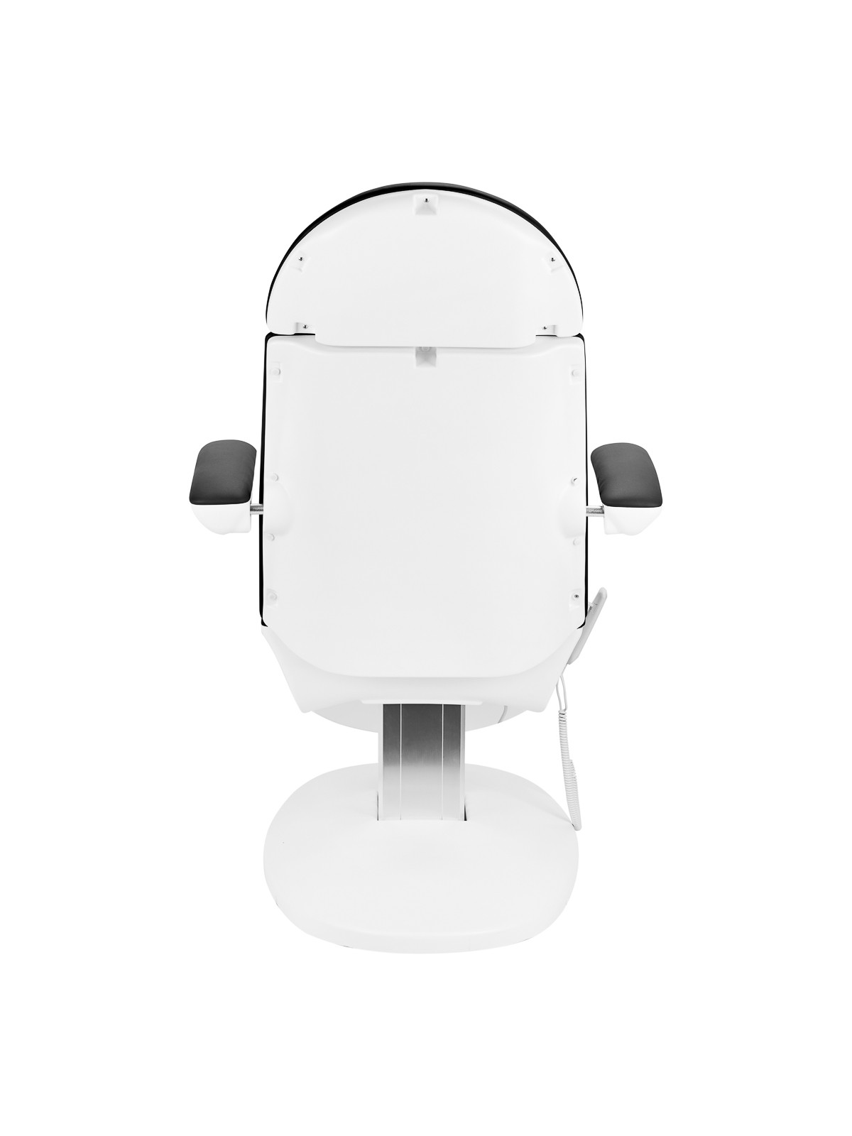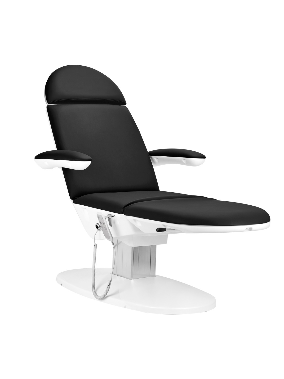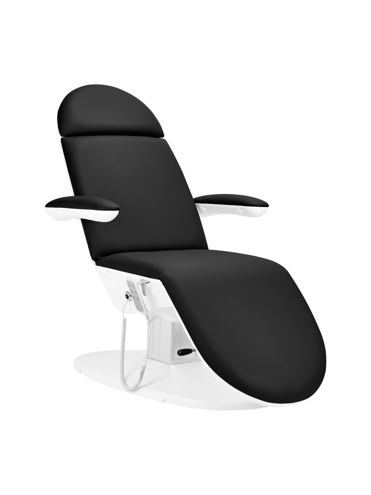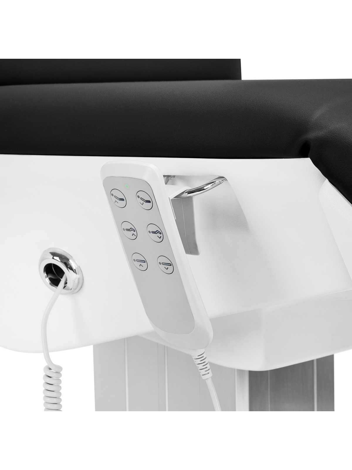 Fotel kosmetyczny elektryczny Eclipse o nowoczesnym wyglądzie wyposażony jest w 3 siłowniki, które są sterowane za pomocą pilota na przewodzie oraz manualnie dostosowywany podnóżek. Łatwość regulacji pozwala na płynne ustawianie pozycji do wykonywania różnorodnych zabiegów, a minimalistyczne wykończenie sprawdzi się w niemal każdym wnętrzu.