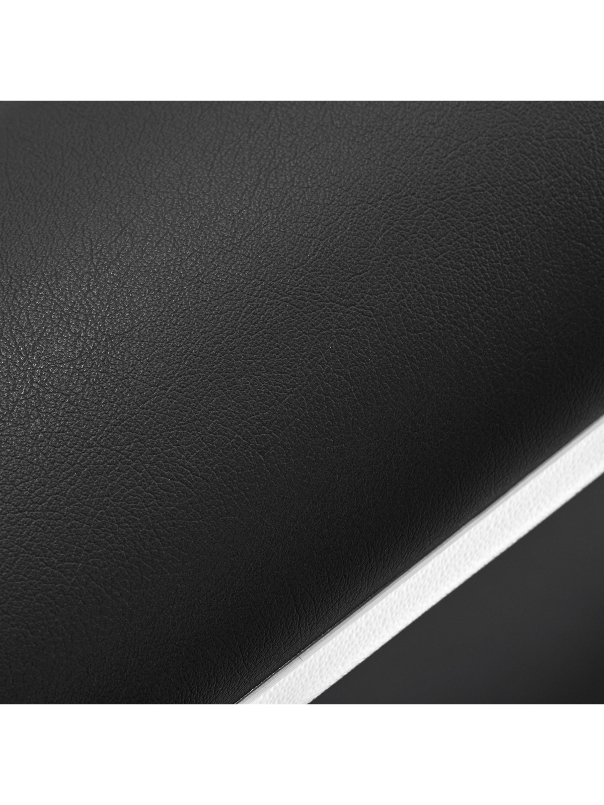 Solidna podstawa zapewnia stabilność, trwałość produktu oraz komfort pracy. Fotel wypełniony jest pianką i pokryty przyjemną w dotyku, matową imitacją skóry w odcieniach czerni. Dzięki użyciu takiego materiału, sprzęt jest odporny na wilgoć i łatwy w czyszczeniu. Opływowy kształt i prostota wykończenia sprawiają, że wygląda estetycznie i wpasuje się niemal w każde wnętrze.