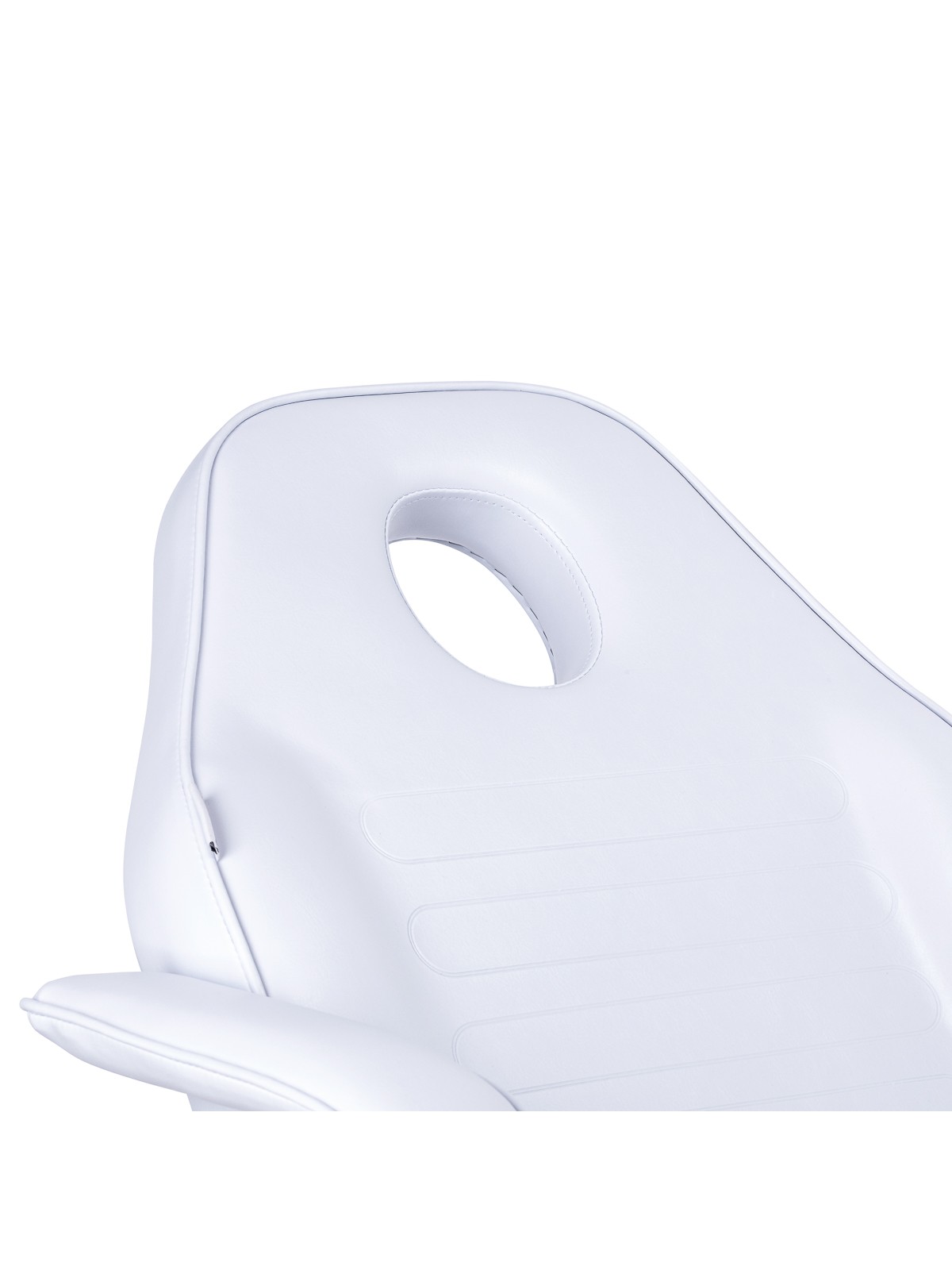 Wysokość fotela można dostosowywać w zakresie 62-75 cm bez użycia rąk za pomocą pompy hydraulicznej. Pozwala to na komfortowe korzystanie ze sprzętu osobom o różnym wzroście i umożliwia dostosowanie go do indywidualnych potrzeb zarówno klienta, jak i osoby wykonującej zabieg. Zastosowany mechanizm jest bardzo trwały i niezawodny. Dzięki otworowi w zagłówku, który jest ukryty pod odpowiednio wyprofilowaną poduszką, fotel doskonale sprawdzi się również przy zabiegach przeprowadzanych na plecach, takich jak masaże.