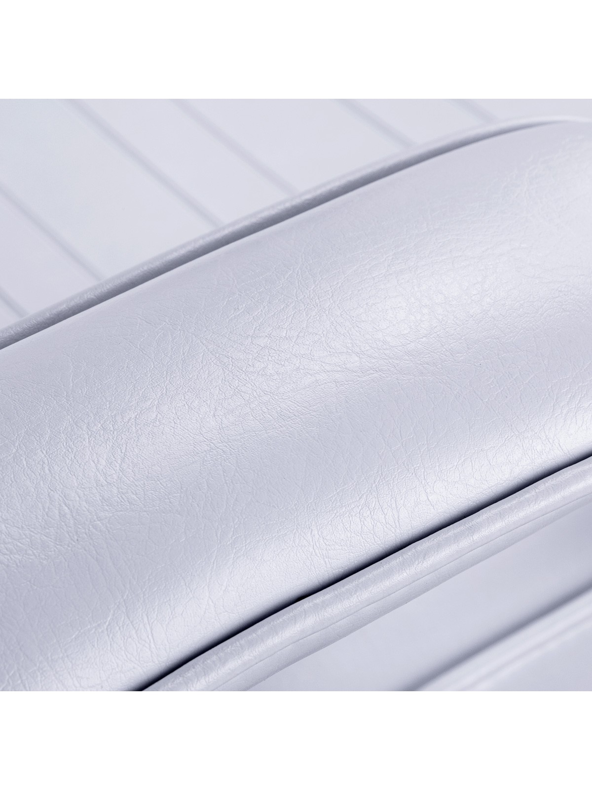 Fotel wypełniony jest pianką o odpowiedniej twardości i pokryty półmatową imitacją skóry w odcieniach bieli. Dzięki użyciu takiego materiału, sprzęt jest komfortowy w użytkowaniu, odporny na wilgoć oraz łatwy w czyszczeniu. Odpowiednio wyprofilowane obszycia nadają ergonomiczny kształt siedzisku. Solidna konstrukcja gwarantuje trwałość oraz stabilność. Prosty design i klasyczna kolorystyka pozwalają mu wpasować się w każde wnętrze.