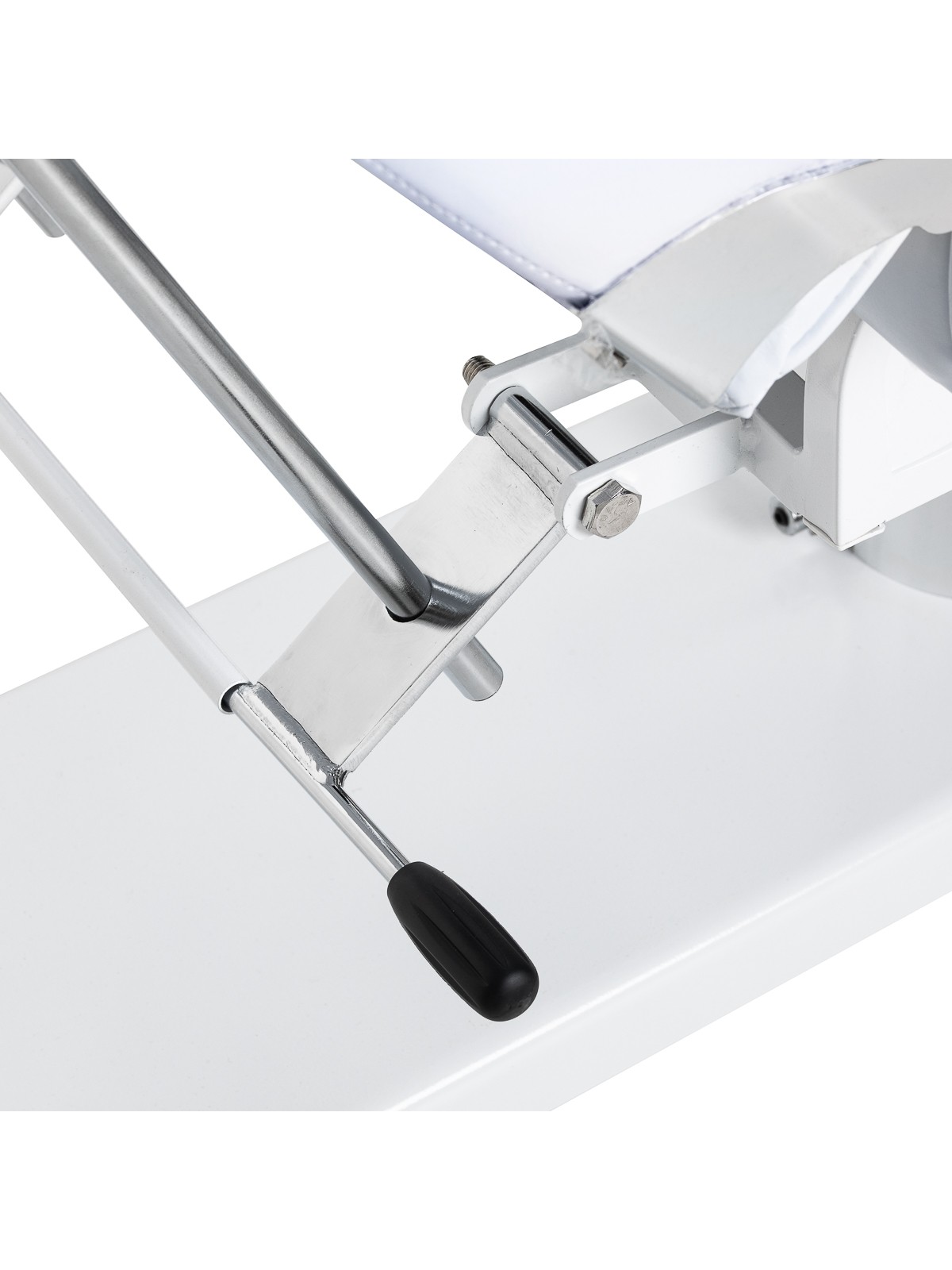 Przy pomocy specjalnych dźwigni możliwa jest bezstopniowa regulacja kątów, pod którymi znajdują się podnóżek i oparcie. Pozwala to na optymalne dostosowanie ustawień do indywidualnych potrzeb, dla prawidłowego i wygodnego wykonywania zabiegów oraz komfortu użytkowania. Fotel można rozłożyć aż do pozycji leżanki, co znacząco zwiększa jego funkcjonalność zarówno podczas zabiegów na twarz, jak i ciało.