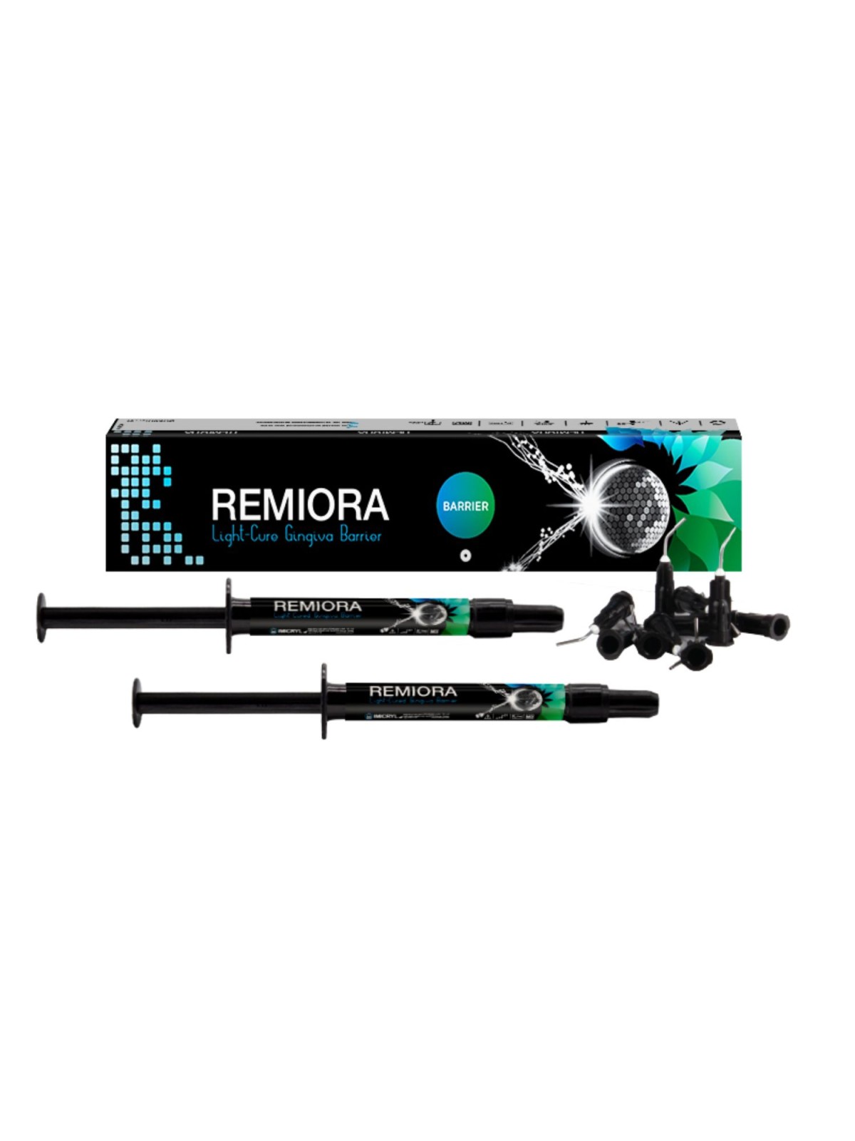 REMIORA – Płynny koferdam światłoutwardzalny 2g utwardza się w kilka sekund, tworząc elastyczną, trwałą barierę ochronną. Preparat wykazuje wysoką adhezję do tkanek miękkich, a po zakończonym zabiegu można go łatwo usunąć w całości lub większych fragmentach.