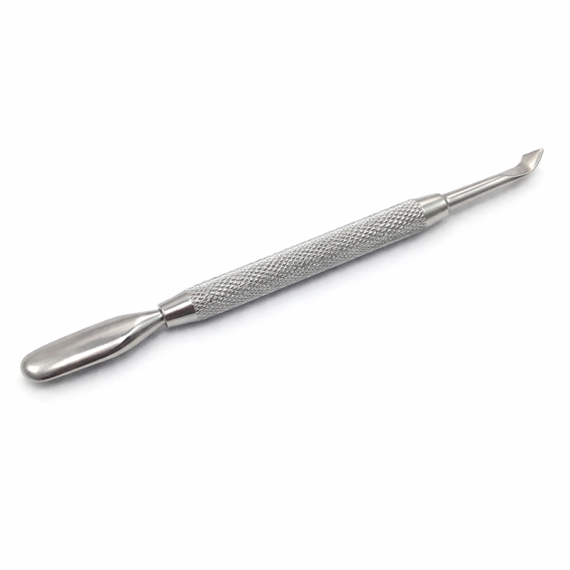 Jedna strona narzędzia zakończona jest ostrzem, które umożliwia dokładne usuwanie martwego naskórka, zrogowaciałych skórek oraz drobnych niedoskonałości. Stal nierdzewna zapewnia bezpieczną, stabilną i higieniczną pracę.