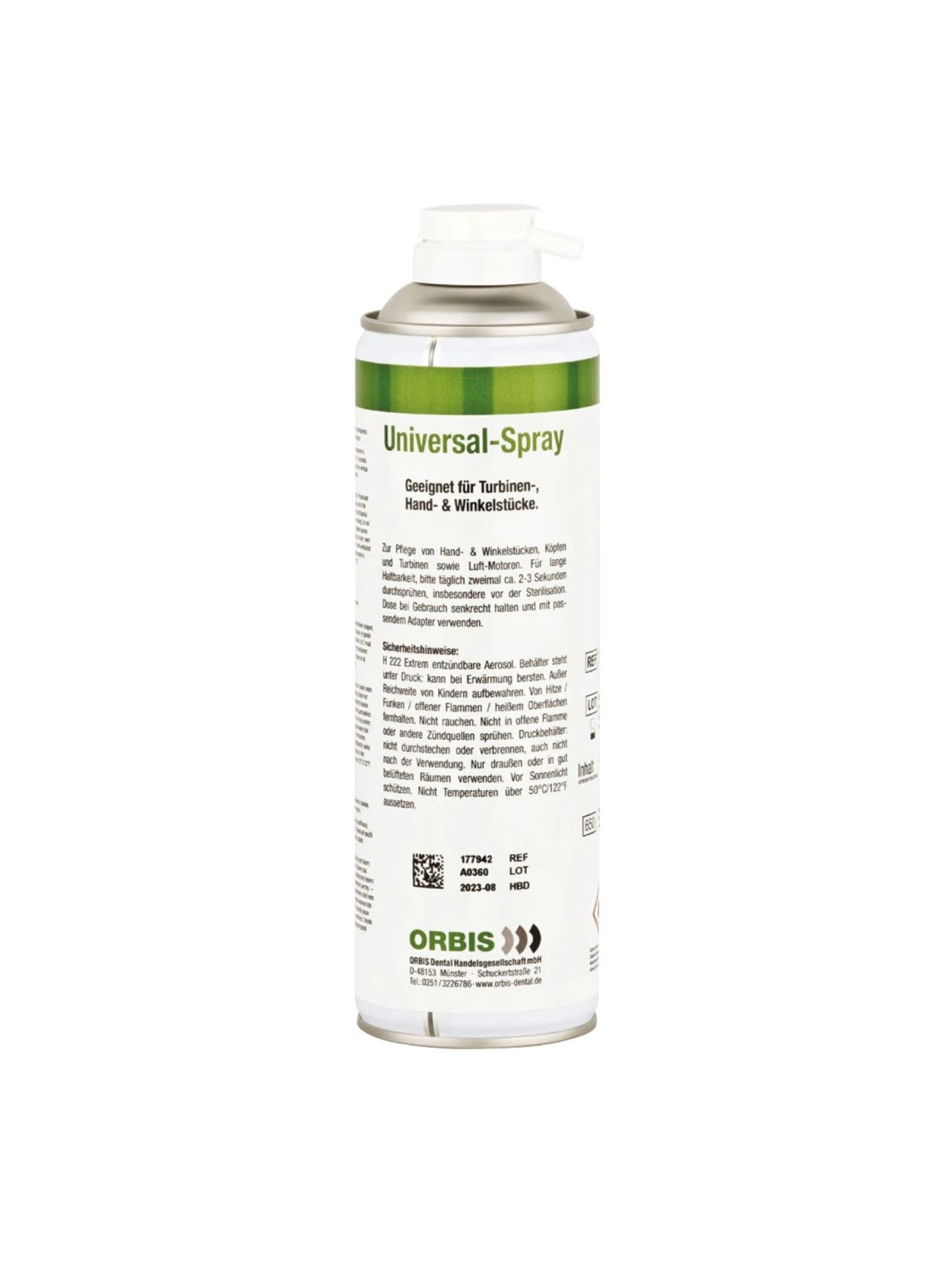 Orbis Spray - Ulei universal de curățare și întreținere 500 ml este un preparat de înaltă calitate pentru întreținerea zilnică a pieselor de mână dentare și cosmetice, cum ar fi piesele de mână, piesele de mână și turbinele. Produsul provine de la un producător german care este recunoscut de mult timp de profesioniști pentru fiabilitatea și eficiența preparatelor sale tehnice. Uleiul conservant spray este o garanție a protecției, a bunei funcționări și a prelungirii duratei de viață a instrumentelor rotative delicate.