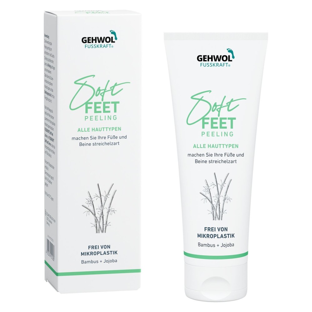 Ефективне відлущування епідермісу - один з ключових елементів професійного догляду за ногами. Бамбуково-цукровий скраб GEHWOL SOFT FEET м'яко видаляє ороговілі клітини, розгладжує поверхню шкіри та готує її до подальшого догляду.
