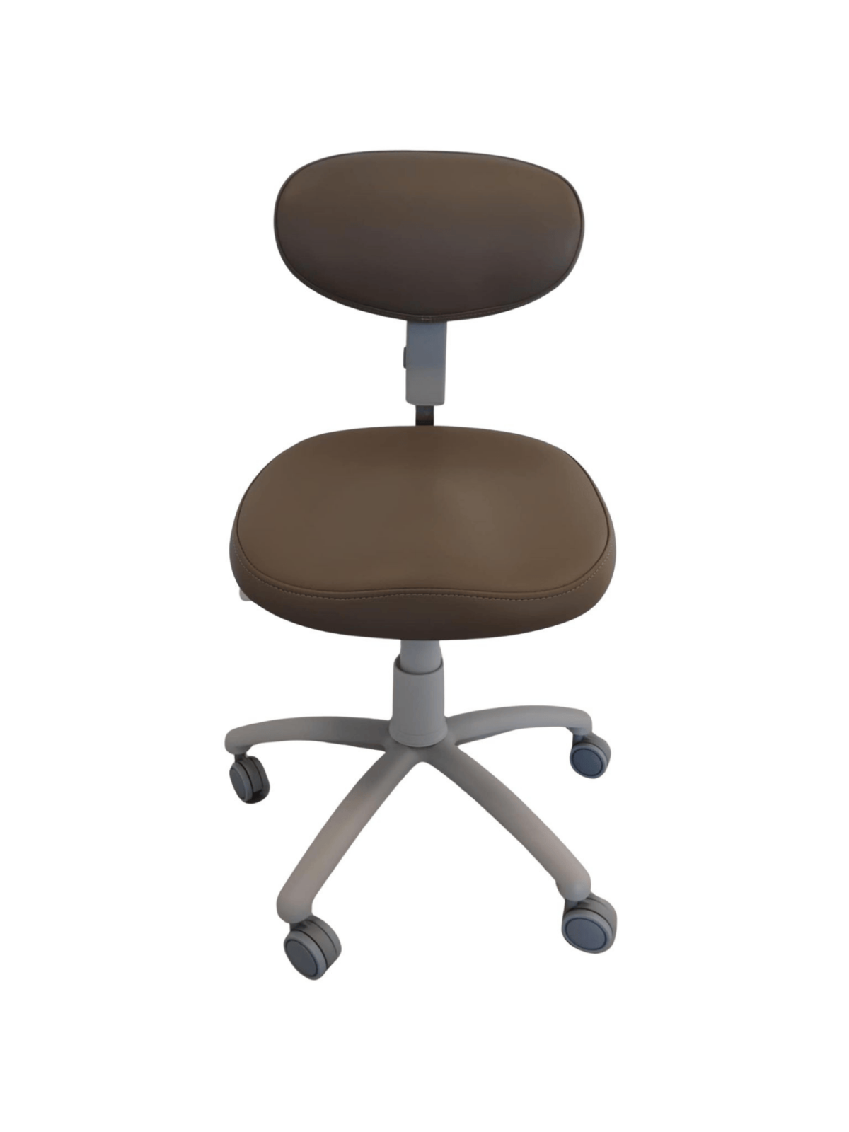 Ця модель - більше, ніж просто стілець, це інструмент, який піклується про комфорт і здоров'я фахівця і водночас підкреслює професіоналізм практики. Елегантний гравійний відтінок у поєднанні з хромованою основою створює сучасний інтер'єрний акцент, який вражає своєю естетикою та довговічністю.